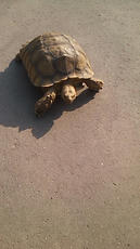 家の前で亀とすれ違いました。