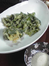 サラダにしようと思ったけど、天ぷらにしてみました♪ 水分量が多くて、最初揚げすぎるとベタっとしたので、さっと☆