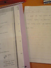 とりあえず、1ページが早く埋まるように、なんとなく一行ずつ空けつつ、さらに大きめの字で書いてます(笑)!